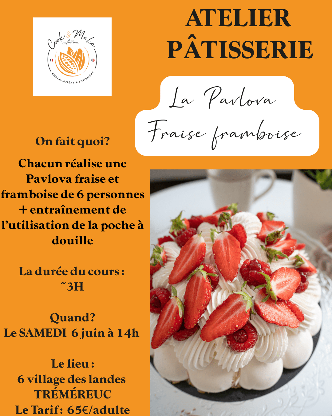Cours Pavlova fruits rouges + Pochage à la poche à douille 6 juin 14h